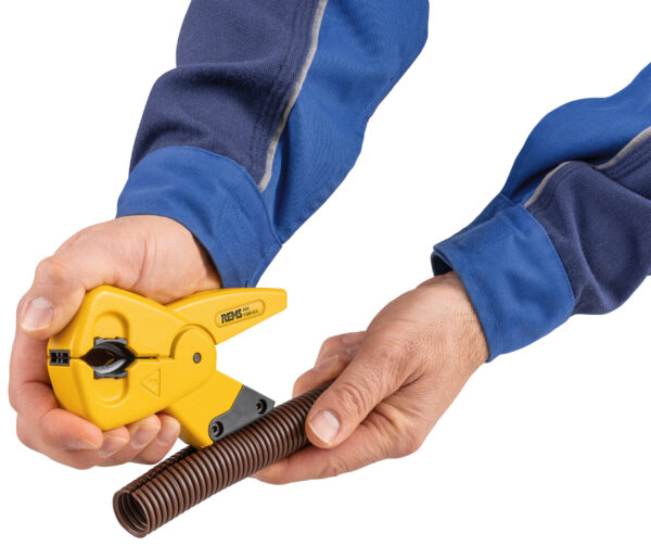 Ανθεκτικό εργαλείο ποιότητας με δύο συστήματα κοπής για την κοπή και την αυλάκωση κυματοειδών σωλήνων προστασίας από πλαστικό.