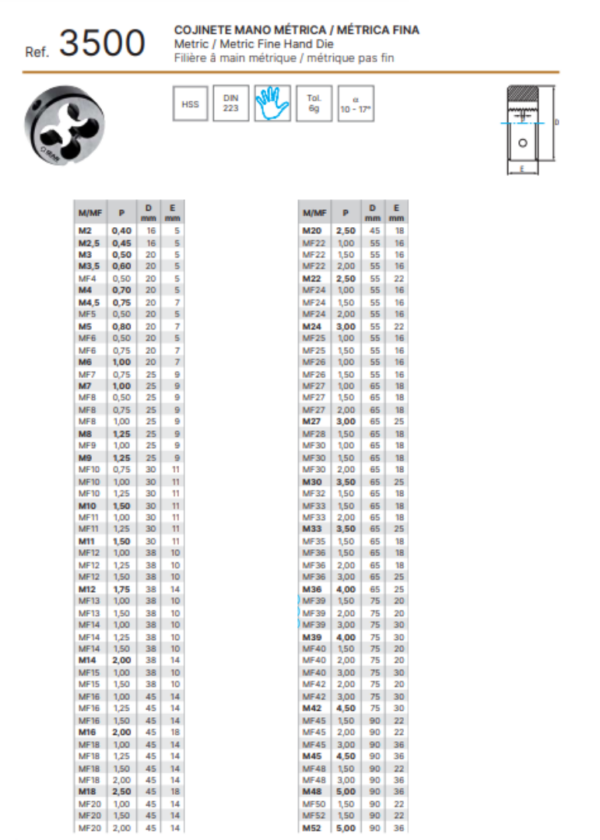 - Τυπολογία: Κατά προτύπο DIN 223, εξασφαλίζοντας συμβατότητα και ποιότητα στις εργασίες κοπής σπειρών.