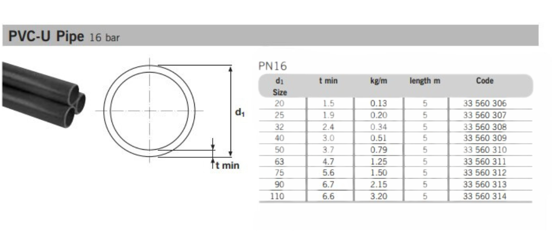 Ο Σωλήνας PVC-U 16 bar είναι η ιδανική λύση για συστήματα που απαιτούν ανθεκτικότητα, αξιοπιστία και αντοχή σε υψηλές πιέσεις. Προσφέρει εύκολη εγκατάσταση και μακροχρόνια απόδοση ακόμα και στις πιο απαιτητικές συνθήκες.