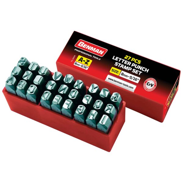 Τα χτυπητά γράμματα BENMAN είναι εξαιρετικά εργαλεία για την ακριβή χάραξη γραμμάτων και συμβόλων σε διάφορους τύπους υλικών, όπως μέταλλο, ξύλο και πλαστικό. Ιδανικά για επαγγελματίες και DIY χρήστες, αυτά τα εργαλεία εξασφαλίζουν καθαρές και ευανάγνωστες χαράξεις, κάνοντάς τα ιδανικά για τη σήμανση προϊόντων, εξαρτημάτων ή εργαλείων.