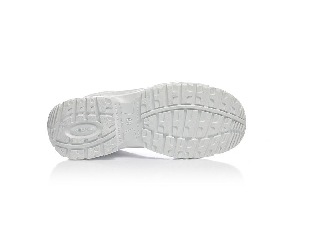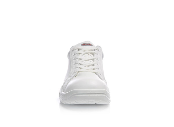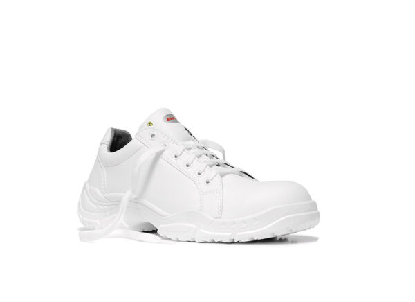 Τα λευκά παπούτσια ασφαλείας WHITE Loop Low ESD S2 από τη σειρά ELTEN WHITE διαθέτουν εξοπλισμό ESD και διατίθενται σε μεγέθη 39 έως 50. Το μοντέλο είναι πιστοποιημένο σύμφωνα με τον κανόνα 112-191 της DGUV και μπορεί να προσαρμοστεί ορθοπεδικά χωρίς να χάνει την έγκριση προστασίας ποδιών. Οι υδρόφοβες μικροΐνες του ανώτερου υλικού είναι ιδιαίτερα ελαφρές, η υφασμάτινη επένδυση το καθιστά επίσης άνετο στο πόδι. Η ατσάλινη προστασία προσφέρει άφθονο χώρο στα δάχτυλα προστατεύοντας από κρούσεις και πιέσεις. Η σόλα SAFETY-GRIP είναι ιδιαίτερα αντιολισθητική και προσφέρει πρόσφυση ακόμα και στις πιο δύσκολες επιφάνειες. Ο εξοπλισμός χωρίς δέρμα έρχεται να εξυπηρετήσει όσους πάσχουν από αλλεργίες.
